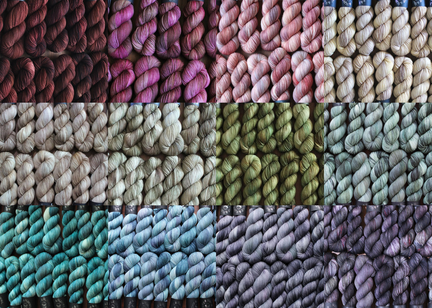 There will be 24 colorways in total: 12 variegated (from the original 2024 Cryptid Club), and 12 complementary tonals.