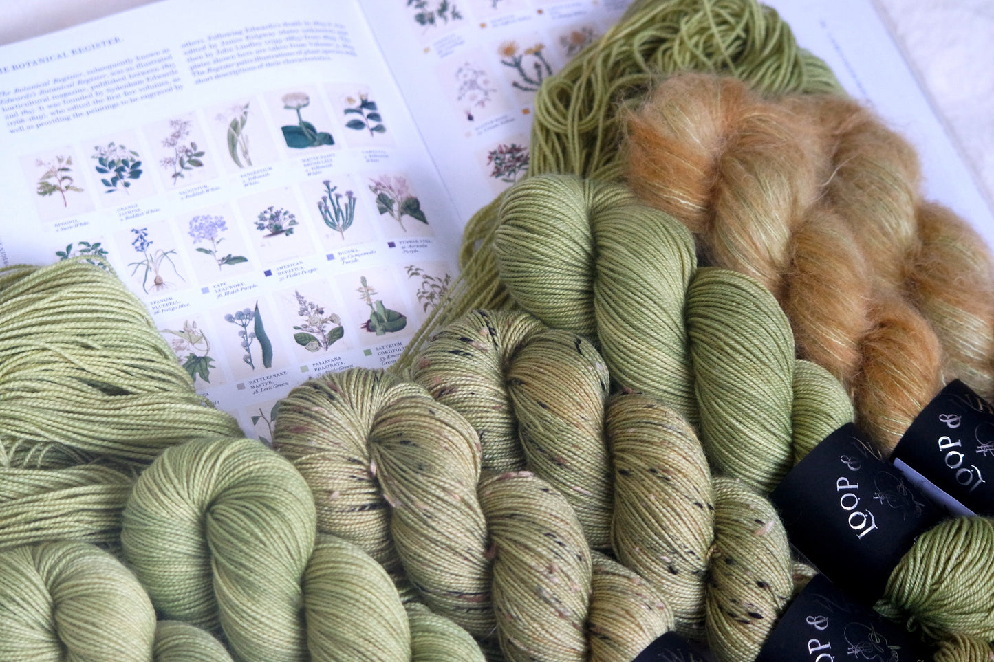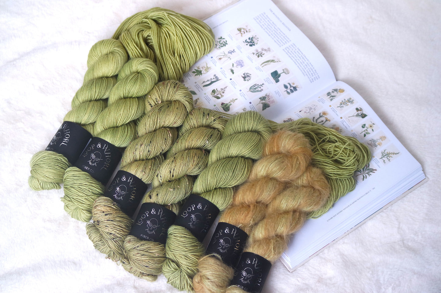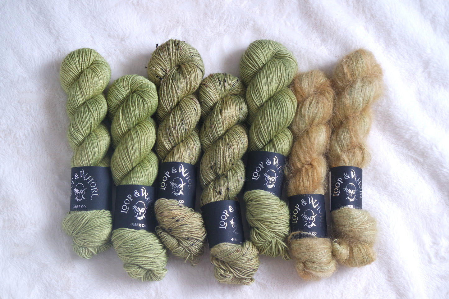 Long-Horned Grasshopper is a soft mossy green. This olive-y toned green has the most subtle pop, and it pairs beautifully with most of the colors from this collection to lift and brighten them up! This colorway leans orange on Suri, with mossy green layers underneath.